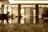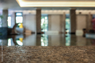 Stone edge of indoor pool with blurred background of luxury spa interior. Modern wellness center with elegant design, soft lighting, and relaxing atmosphere