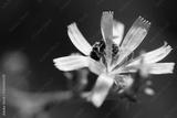 Macro shot of a bee collecting nectar from a delicate blue flower during a sunny afternoon in a garden