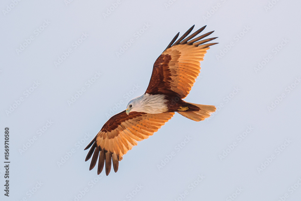 Goa, India. Brahminy Kite Flying In Blue Sky