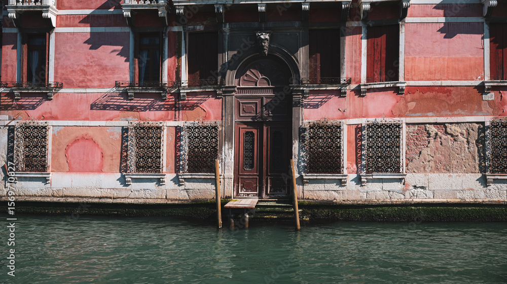 Weathered waterfront building with a canal view in Venice
