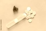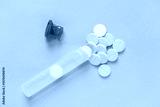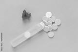Close-up of effervescent tablets spilling from a tube. Healthcare, nutrition, pharmacy, or medical concept with minimal and professional visual style.