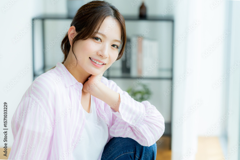 部屋でリラックスする女性