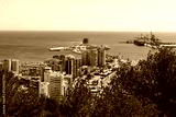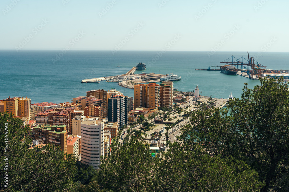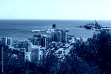 Coastal cityscape with vibrant buildings, tranquil sea, and bustling harbor.