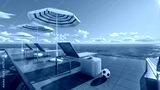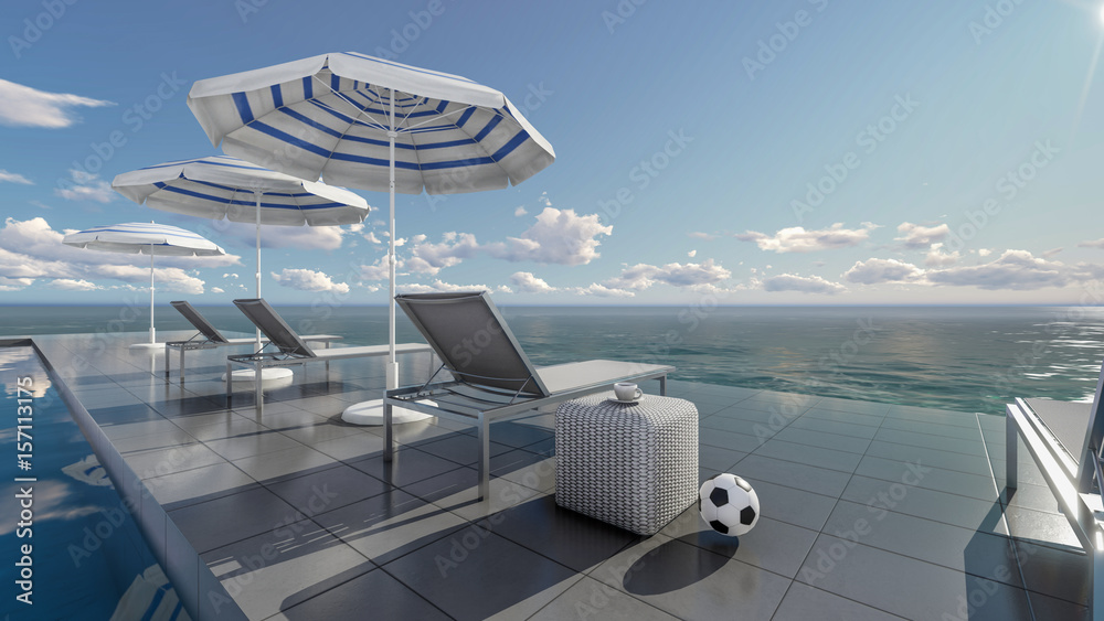 3D Rendering Pool Villa, Umbrella And Sunbed