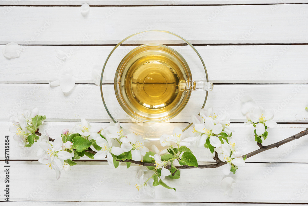 Green tea and apple-tree flowers