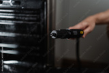Housekeeper preparing steam cleaner for efficient cleaning of gas oven in kitchen, focusing on maintaining hygiene and ensuring spotless, sanitized environment. Concept of housekeeping domestic life.