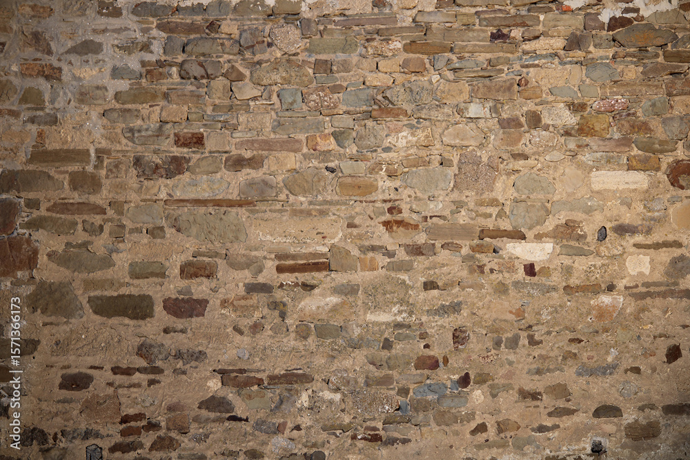 Stone antique old wall as a background or texture. Vintage background of a fortress wall in loft and grunge style with place for text and copy space.