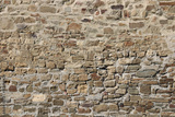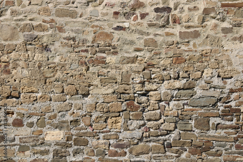 Stone antique old wall as a background or texture. Vintage background of a fortress wall in loft and grunge style with place for text and copy space.