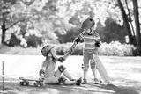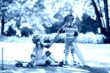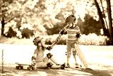 Children riding skateboard in summer park
