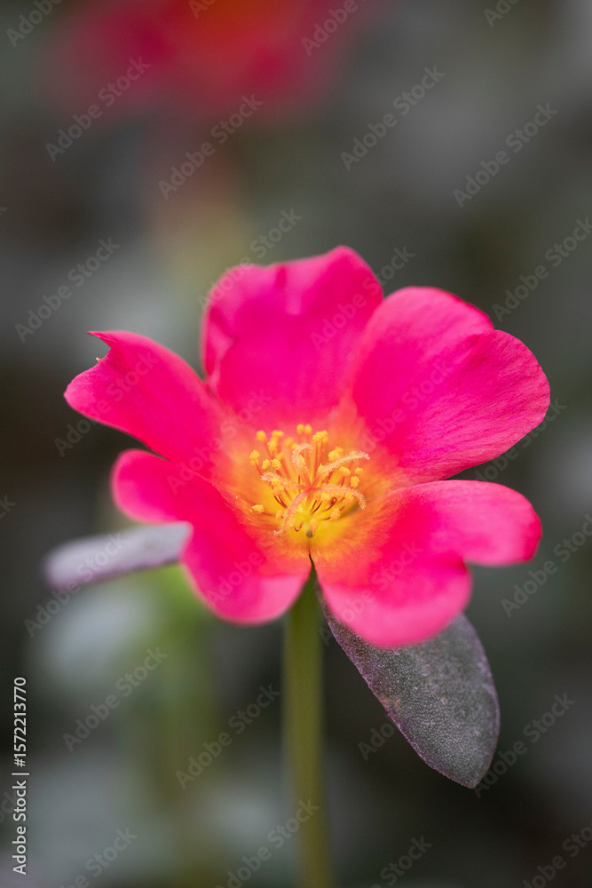 Pink blossom: Portulaca Umbraticola Kunth. Shop garden. Nursery. Day time natural environment.