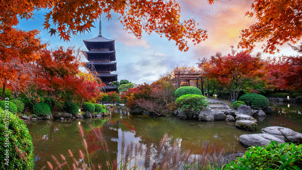 Toji Temple in Kyoto, Japan with beautiful garden and autumn foliage