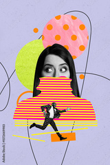 Poster 3d pop poster art collage of happy girl guy dance weekend party chill entertainment success occasion celebrate holiday