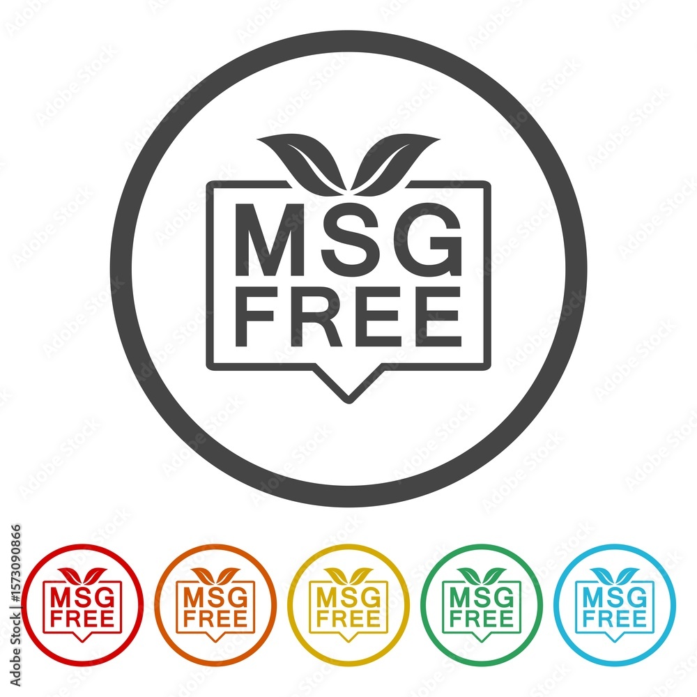 MSG free icon. Set icons in color circle buttons