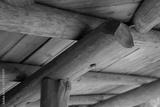 Wooden log roof construction detail showing traditional timber joinery beams and planks in rustic architecture sustainable natural building materials eco friendly craftwork design