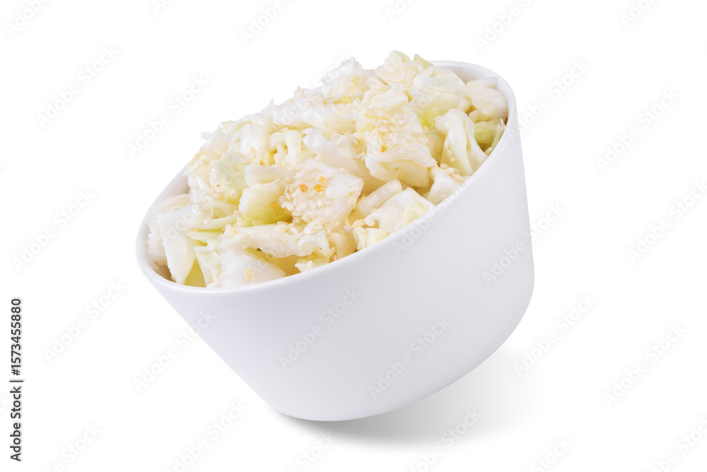 Sesame seeds cabbage asian salad in a bowl on a white isolated background