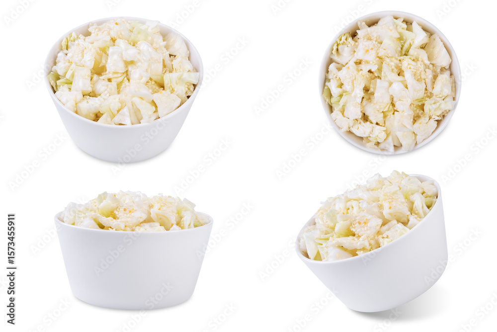 Sesame seeds cabbage asian salad in a bowl on a white isolated background