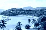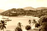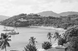 Antigua, Caribbean islands, English harbour view with Freeman’s bay and yachts anchored by the beach
