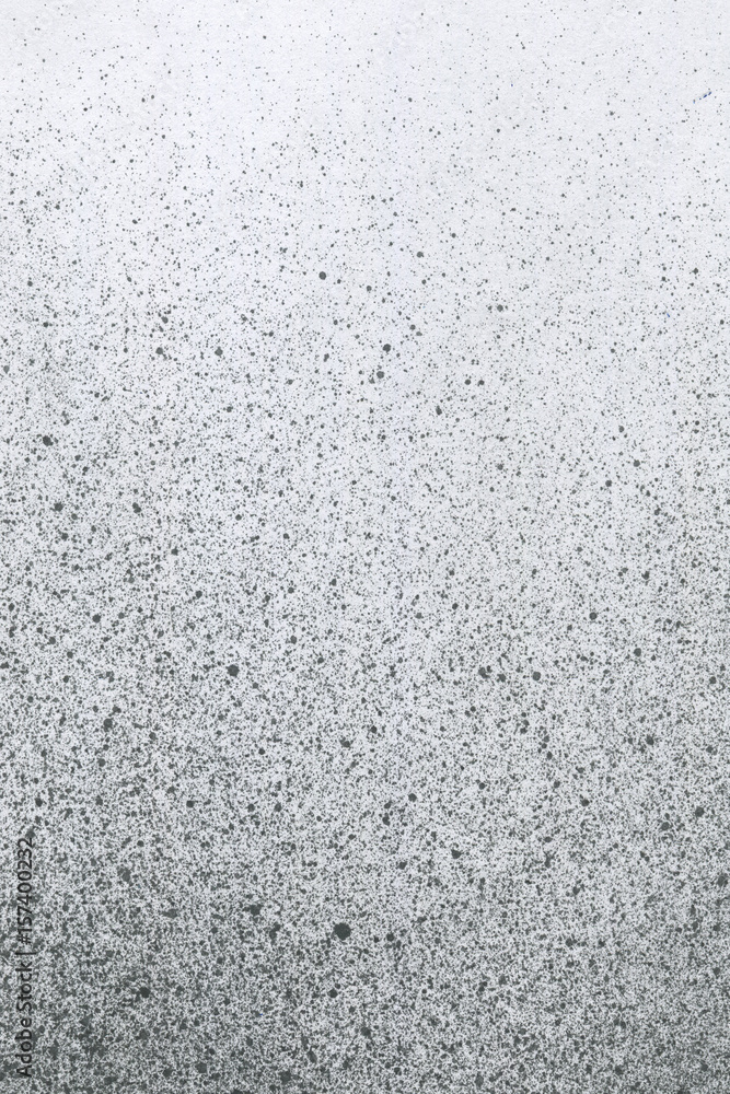 Very hight resolution. Wallpaper with airbrush effect. Black acrylic paint stroke texture on white paper. Scattered mud art. Macro image. Hand made grunge