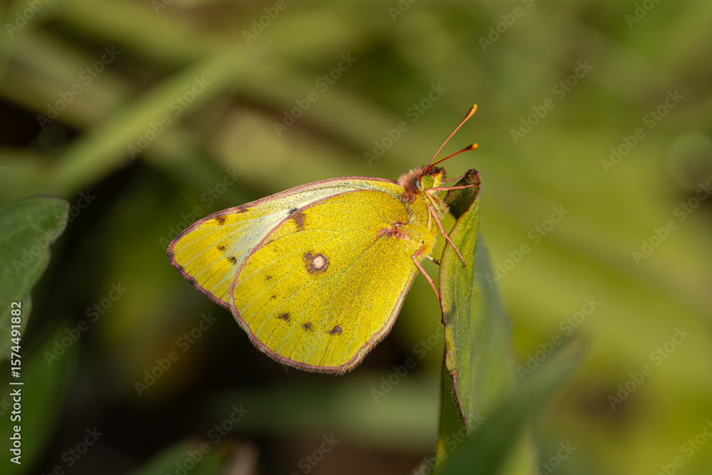 butterfly on leaf, colias alfacariensis, australis, butterfly, pleridae, Berger's clouded yellow, pale clouded yellow