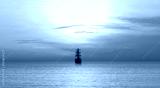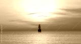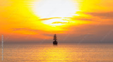Sailing old ship in a calm sea in the background amazing sun and sunset