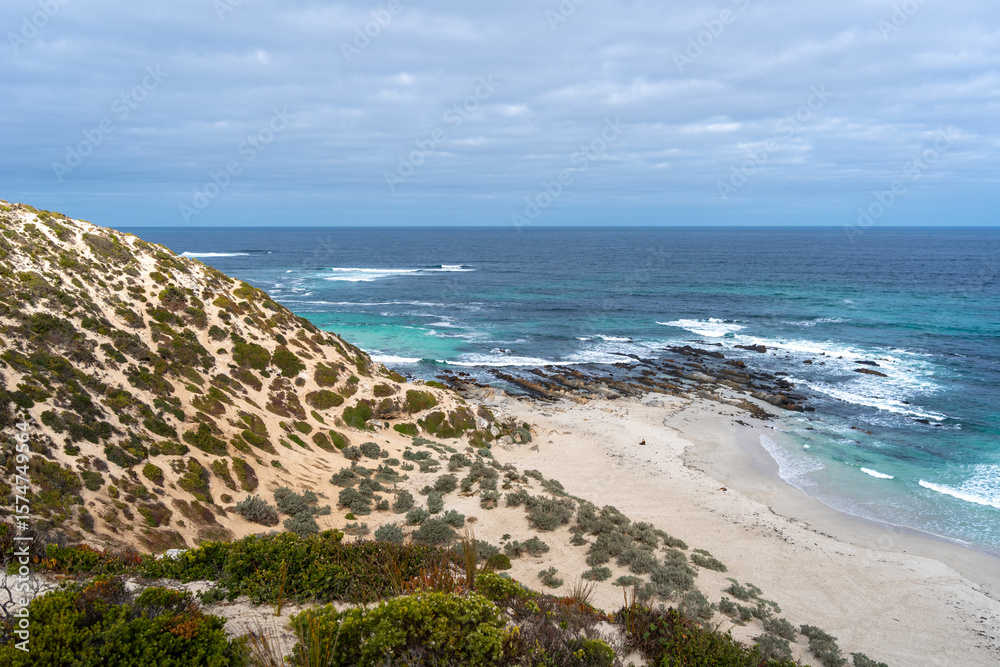Seals resting on the sandy beach of Seal Bay, in Kangaroo Island, Australia