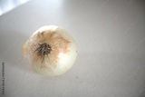 One whole onion with white background close up.