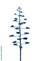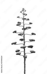 Flora of Gran Canaria - Agave americana, sentry plant, introduced and invasive species, tall inflorescence isolated on white