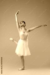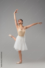 Elegant ballet dancer in motion striking a pose with grace and poise against a neutral backdrop