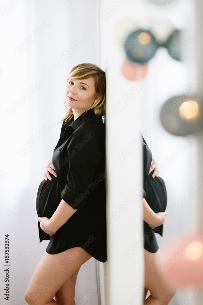 Pregnant woman in black shirt.