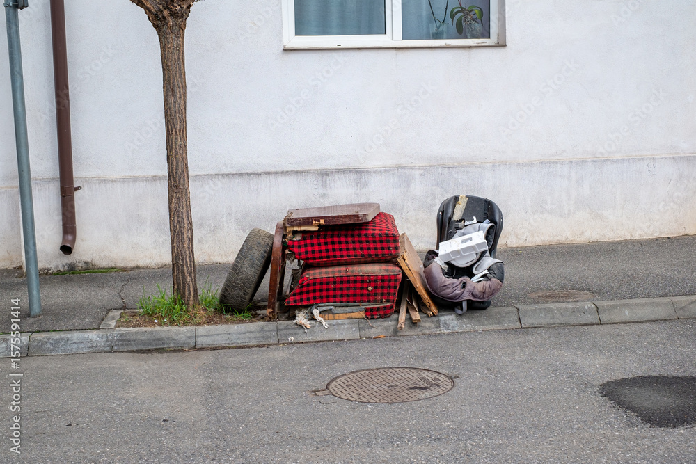 Household miscellaneous rubbish items put on the street for council bulk waste collection
