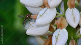 hover fly dancing around the flowers