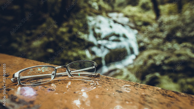 Eyeglasses ; Spectacles On Waterfall Cliff