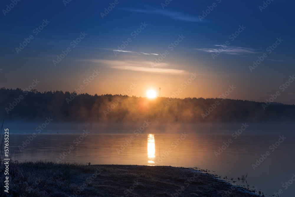Magical sunrise over a lake