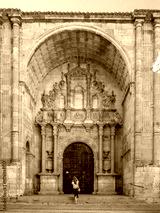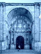Church of Santa Maria in Alarcón, built during the 16th century on the site of a previous Romanesque church. Its Renaissance-style doorway is notable, and its west wall features a semicircular arch.