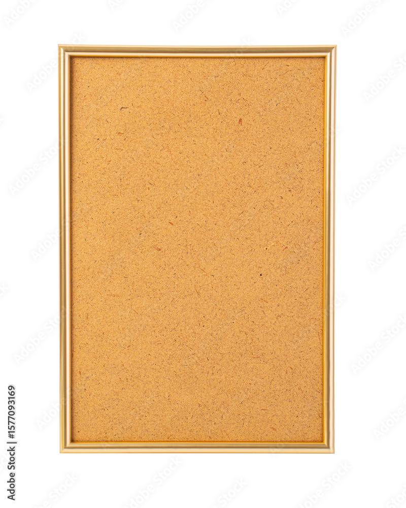 Golden frame showing cork board on transparent background