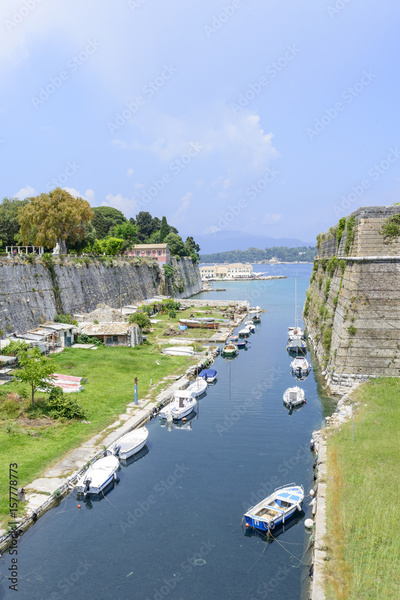 Canal in old Byzantine fortress in Kerkyra, Corfu island in Greece.