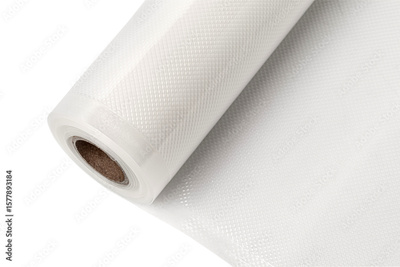 Roll of vacuum sealer bags embossed for food preservation on white background