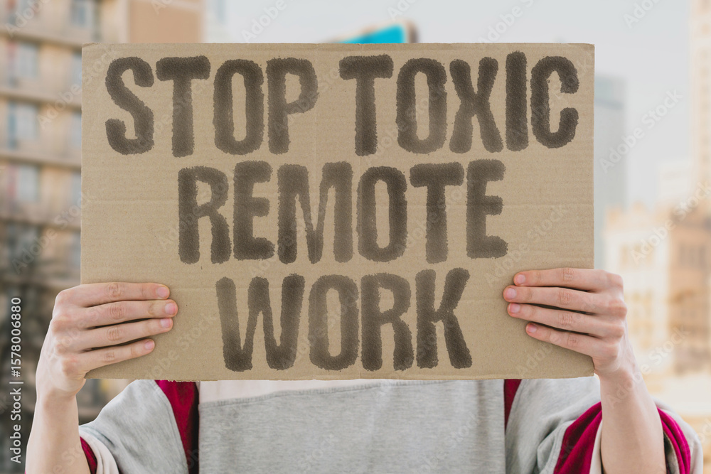 "Stop Toxic Remote Work" Call to restore boundaries and protect well-being in remote jobs. BALANCE. HEALTH. PRIVACY. STRESS. DIGNITY. PRODUCTIVITY. AUTONOMY