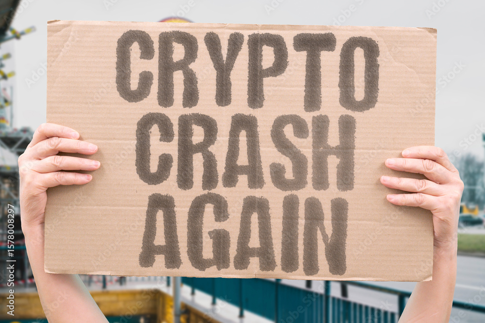 "Crypto Crash Again" Cautionary warning against financial hype and digital asset speculation. RISK. VOLATILITY. LOSS. SPECULATION. CAUTION. UNCERTAINTY. ECONOMY.