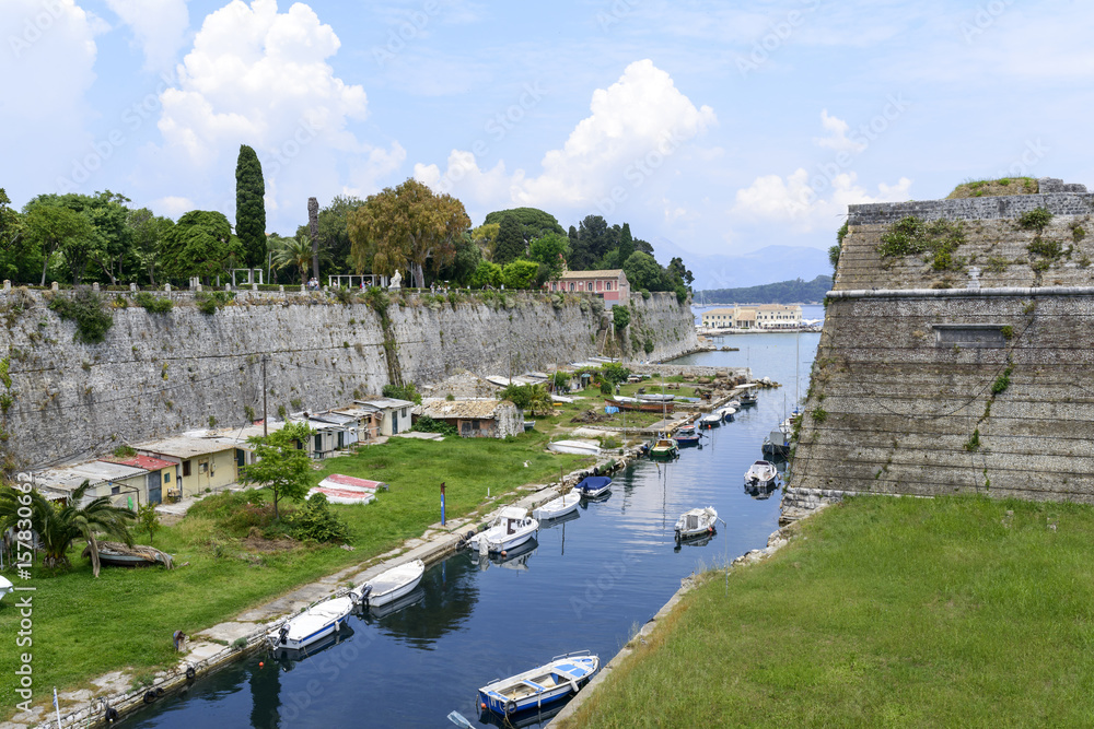 Canal in old Byzantine fortress in Kerkyra, Corfu island in Greece.