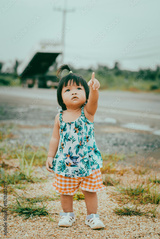 Family life with baby girl exploring nature together outdoor adventure asian children