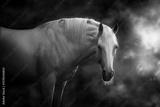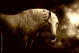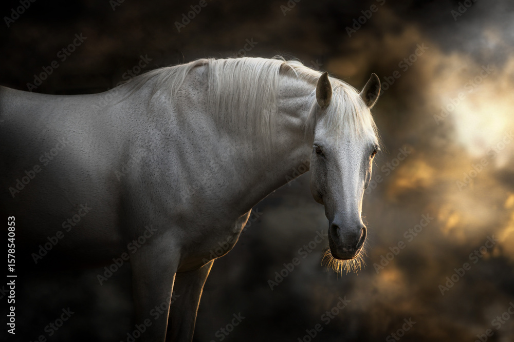 Horse with long mane in sunlight