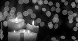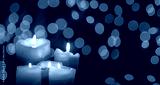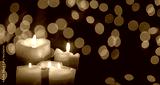 Candles glowing against a bokeh background.