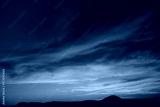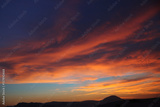Sunset. Sky clouds background. Ridge Mountains silhouette. Skyline. Montenegro