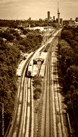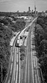 Hanwell train station in London with classic Victorian architecture, platform canopy, and railway tracks under a clear summer sky
