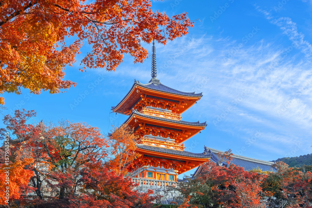 Kiyomizu-dera temple with beautiful foliage in autumn in Kyoto, Japan
