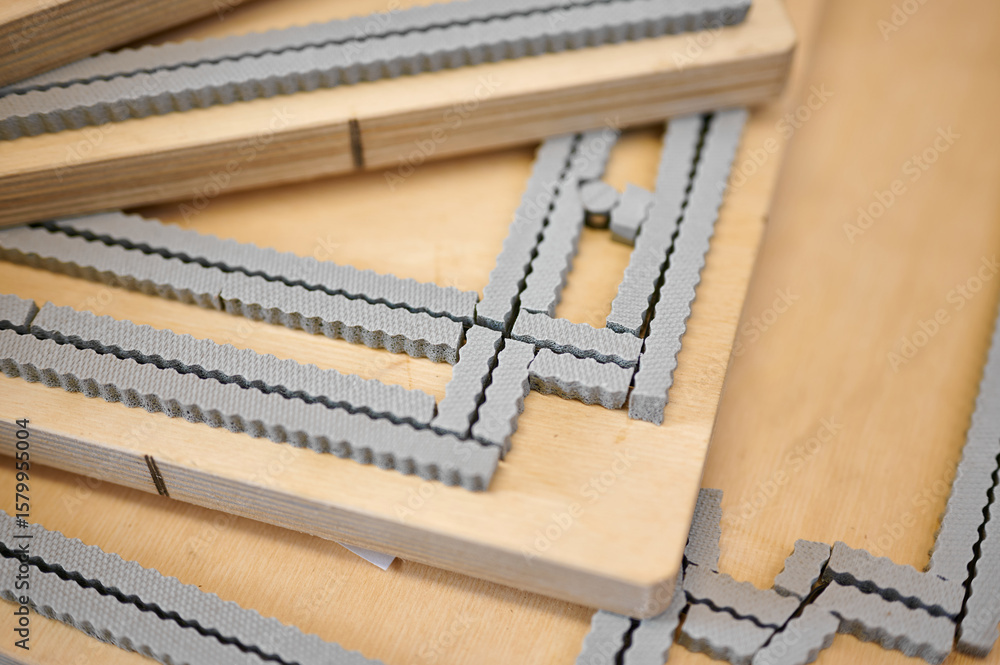 Innovative die cutting dies for precision cardboard box production in a vibrant workshop environment