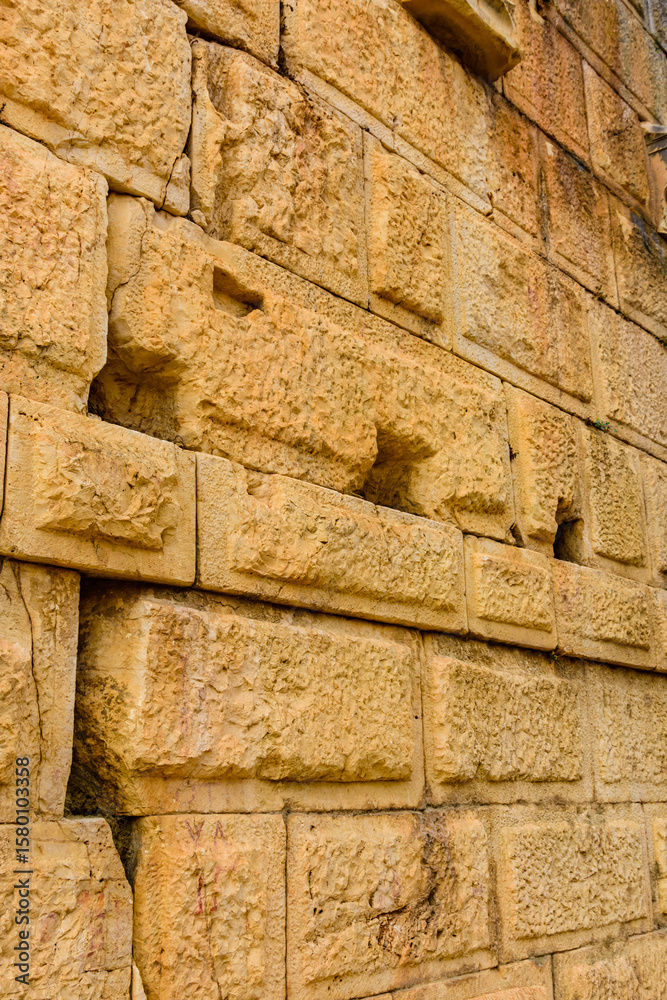 Stone walls of the ancient roman or greek theatre in town Demre. Ancient Myra city. Antalya province, Turkey