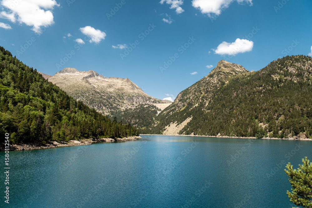 Lac d'Oredon in the French Pyrenees with the dam wall of Lac-de-Cap-Long in the distance