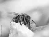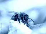 In a vibrant garden, a macro view captures bees delicately perched on flowers, surrounded by electric blues and neon pinks, creating a surreal, enchanting atmosphere ideal for artistic expression